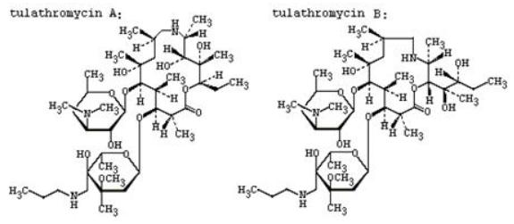 泰拉霉素(Tulathromycin)是一種新近上市且為動物專用的大環內酯類半合成抗生素,分子式為C41H79N3O12(分子量806)。