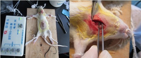 3. 術后縫合,觀察動物狀態,并對電針組實驗動物進行電針治療
