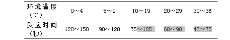 4.3過(guò)氧化值測(cè)試紙的反應(yīng)計(jì)時(shí)視環(huán)境溫度而定,在表中規(guī)定的時(shí)間內(nèi)比色有效。