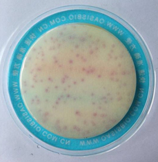 紫紅色的菌落為金黃色葡萄球菌;呈藍色的菌落為其他雜菌。選擇菌落數適中(20~200CFU)的檢測板進行計數,乘以稀釋倍數后即為每毫升(克)樣品中所含的金黃色葡萄球菌數目。